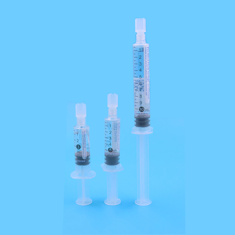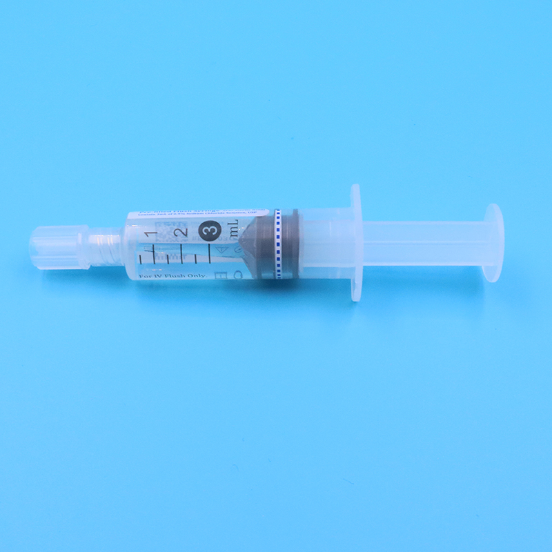 Used for flushing and/or sealing the end of tubing between different drug treatment. Suitable for the flushing and/or sealing of lV,PICC,CVC, implantable infusion ports.